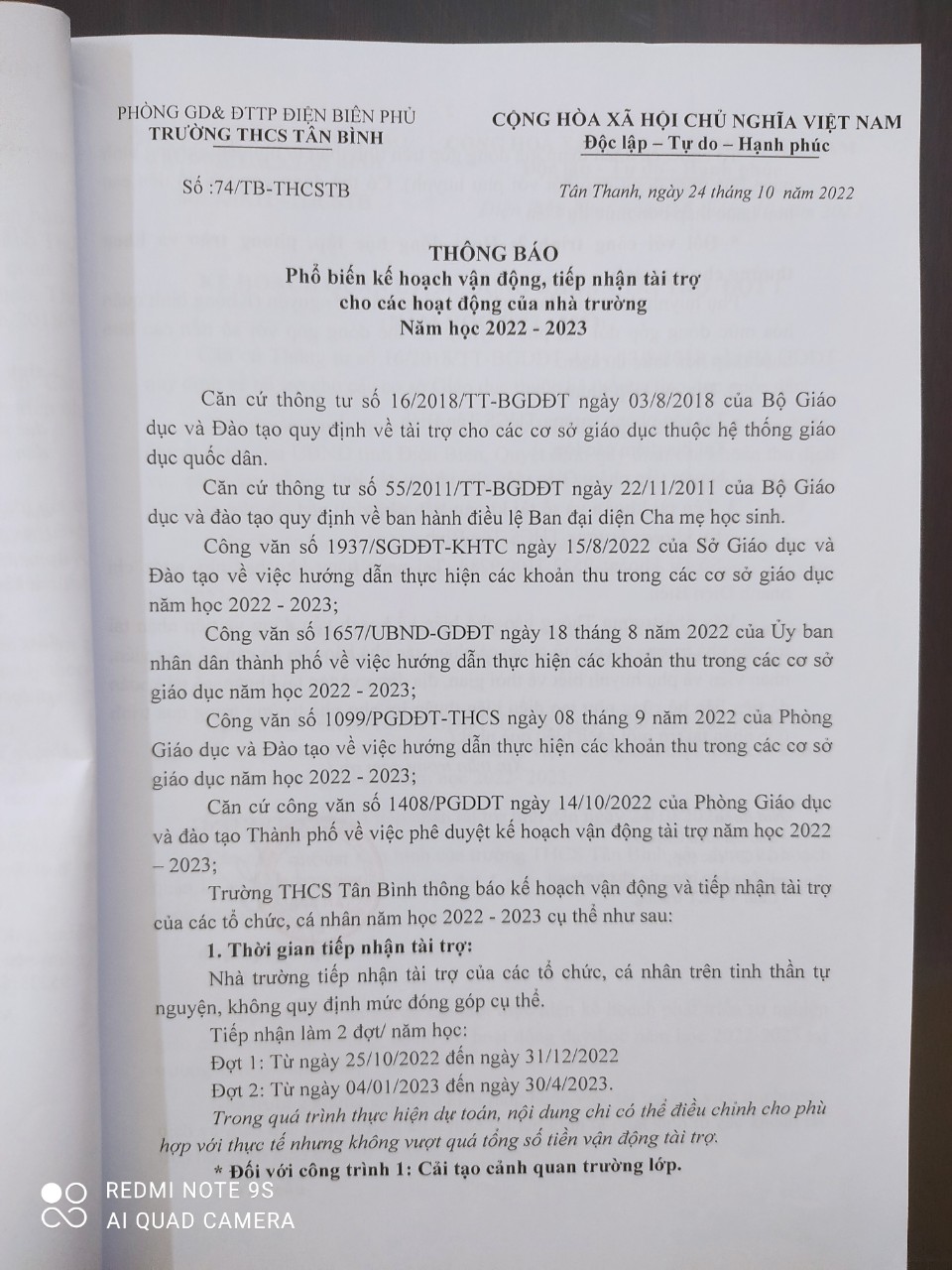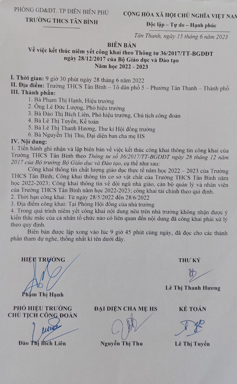 Quyết định V/v ban hành Quy chế công khai trường THCS Tân Bình theo Thông tư 09/2024/TT-BGDĐT ngày03/6/2024 của Bộ GD &ĐT