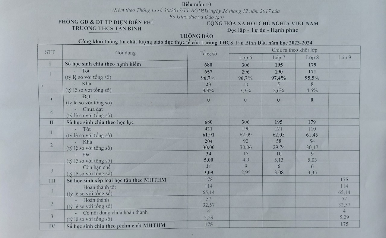 Báo cáo thực hiện công tác công khai theo Thông tư 09/2024/TT-BGDĐT ngày 03/6/2024 của Bộ GD&ĐT